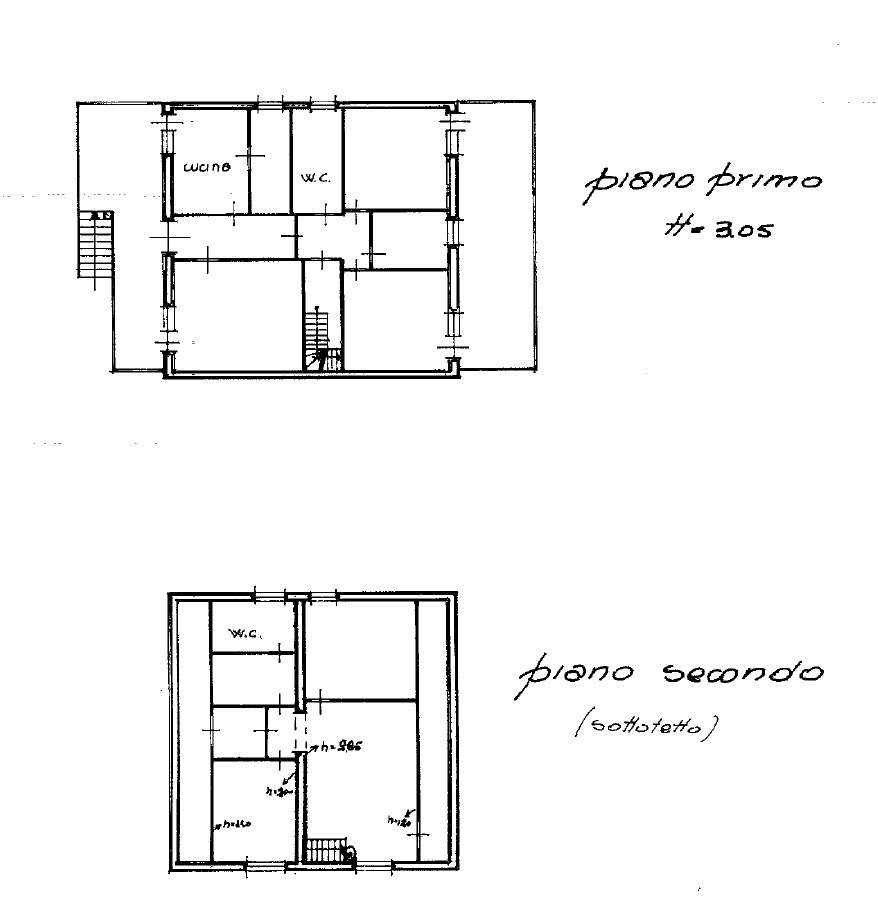 Piano secondo (mansarda): collegata internamente, composta da due stanze, un bagno di servizio e ripostiglio.
