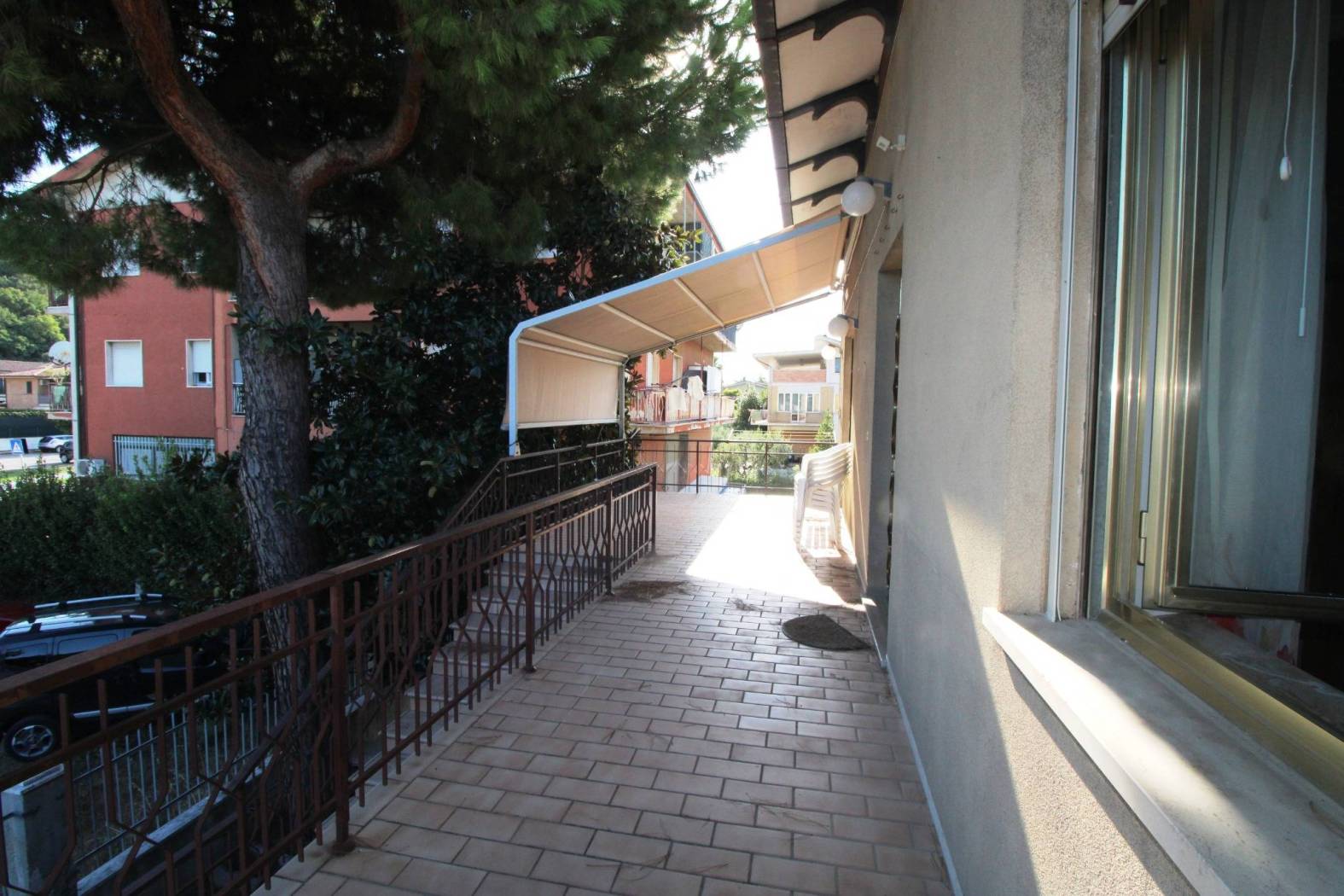 In posizione strategica e servitissima, nelle immediate vicinanze delle principali vie di comunicazione e a poca distanza dal mare, proponiamo in vendita un ampio appartamento con ingresso indipendente, senza condominio, sviluppato su due livelli e con spazi generosi e funzionali.