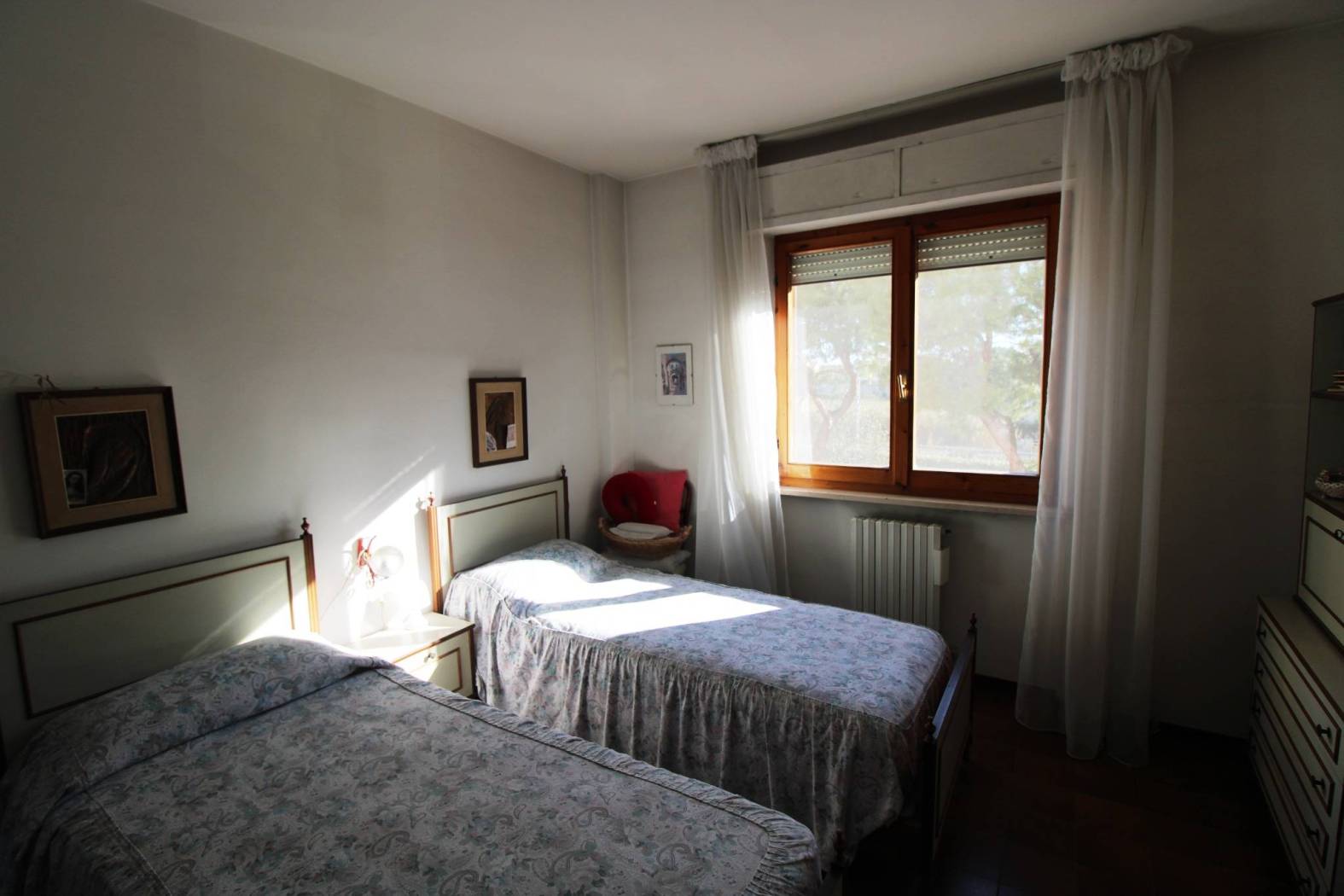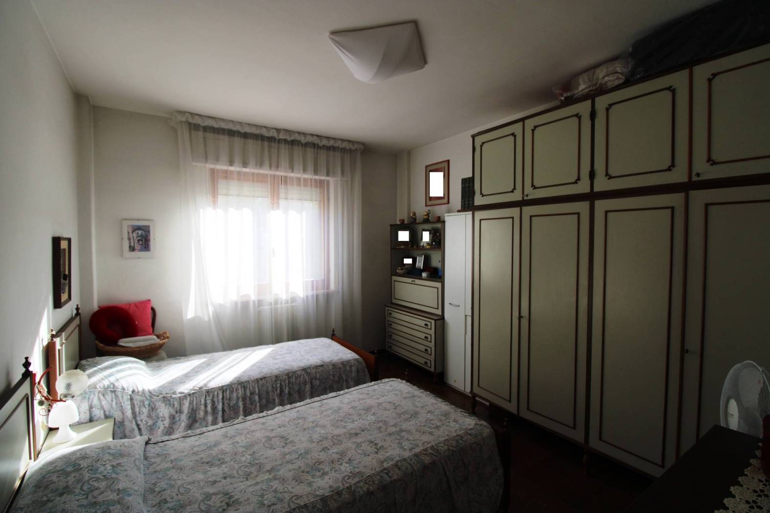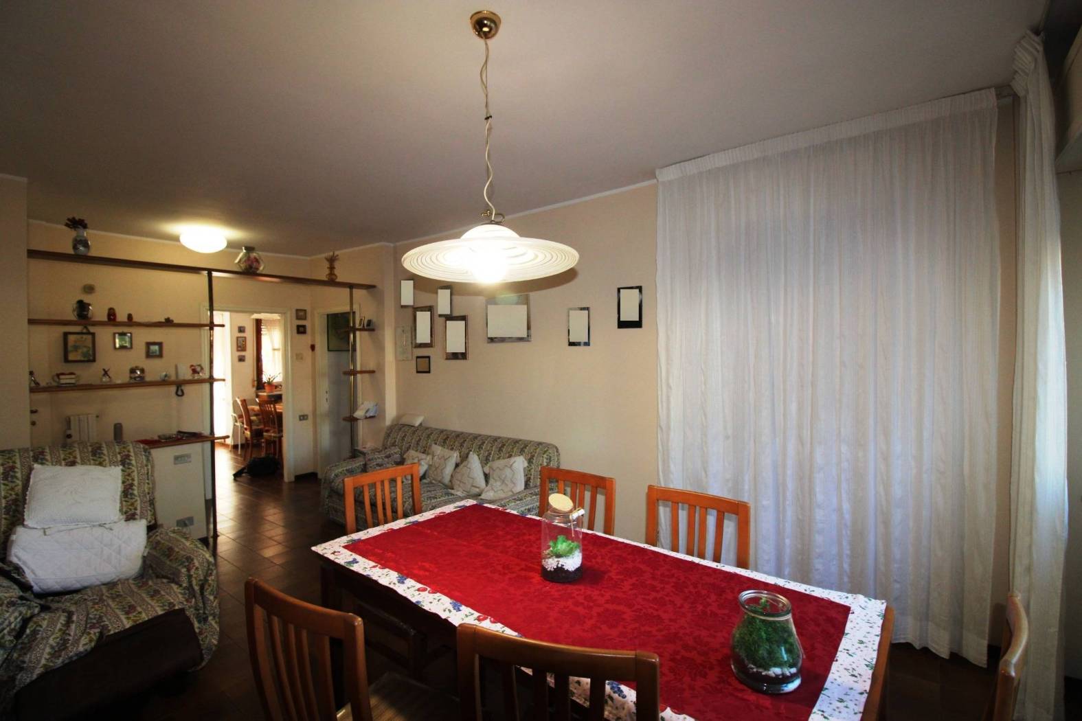 L'appartamento risulta così composto: ingresso con disimpegno verso la zona giorno che ospita un ampio e luminoso soggiorno ed una cucina abitabile con accesso al balcone, disimpegno verso la zona notte con tre camere, di cui due matrimoniali ed una cameretta, doppi servizi e comoda veranda utilizzabile come zona lavanderia.